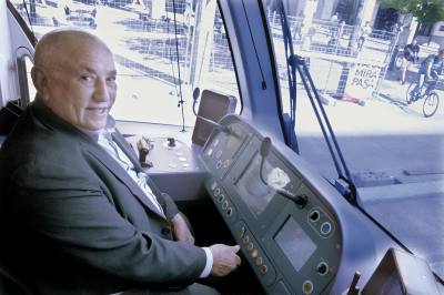 O governador Siqueira Campos posa para foto na cabine de comando de metrô em Zaragoza, na Espanha: tecnologia para Palmas